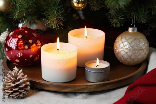 Charming Candles Nestled by a Festive Tree for a Cozy Holiday Ambiance