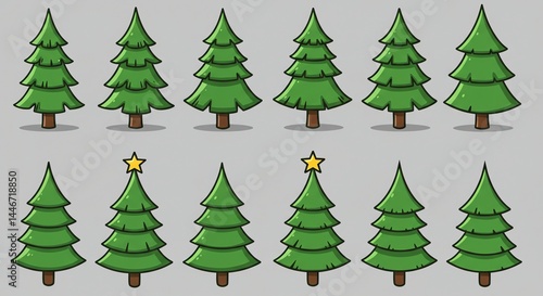 Charming Cartoon Christmas Trees: A Festive Green Collection