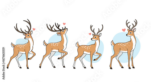 Charming cartoon deer with hearts, perfect for children's designs, greeting cards, and branding