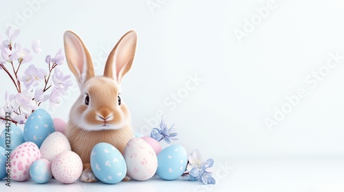 Charming Easter Bunny Amidst Colorful Eggs and Spring Flowers