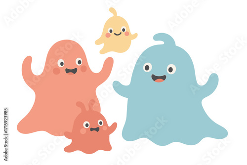 Charming ghost family vector illustration for halloween decor in pastel colors
