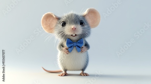 Charming Grey Mouse in Blue Bowtie and Sneakers - Adorable Full-body Shot with Soft Fur Texture and Gentle Lighting in C4D Rendering