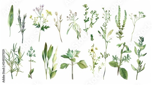 Charming Hand - Drawn Vector Watercolor Set: Herbs, Wildflowers, and Spices for a Rustic Touch