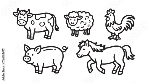 Charming hand drawn farm animals collection featuring cow sheep pig horse and rooster