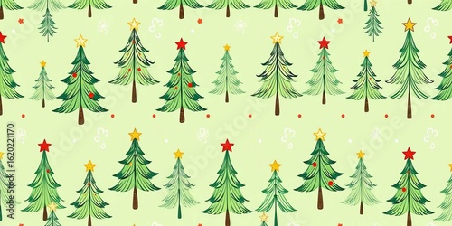 Charming hand-drawn Christmas tree doodle pattern; whimsical festive design ideal for wrapping paper, cards, and seasonal decor, winter, scrapbook