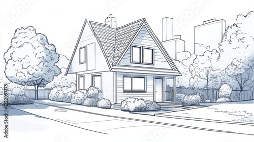 Charming Hand-Drawn Illustration of Cozy Suburban House