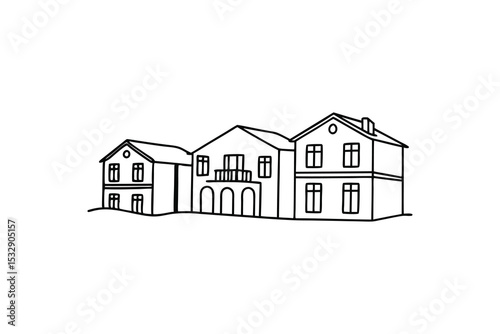 Charming line-art illustration of three connected houses