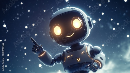 Charming Little Robot in a Snowy Night A Digital Artwork of a Friendly AI