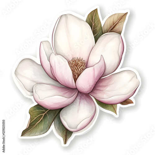 Charming magnolia flower with graceful blooms, decorative sticker design