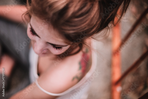 Charming model with tattooed back