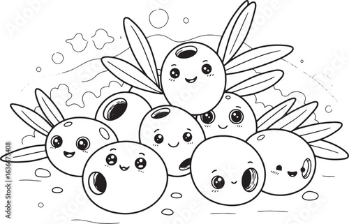 Charming Olive Characters: A Delightful Black and White Cartoon