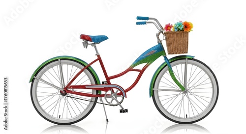 Charming Pastel Blue Ladies Bicycle with Woven Front Basket Classic Vintage Cruiser Bike, Brown Leather Saddle, Isolated White