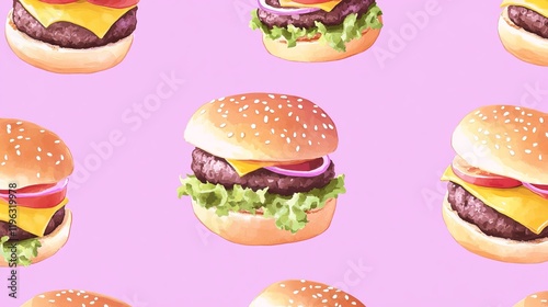 Charming Pattern of Delicious Hamburgers on a Playful Pink Background Creating a Joyful Atmosphere