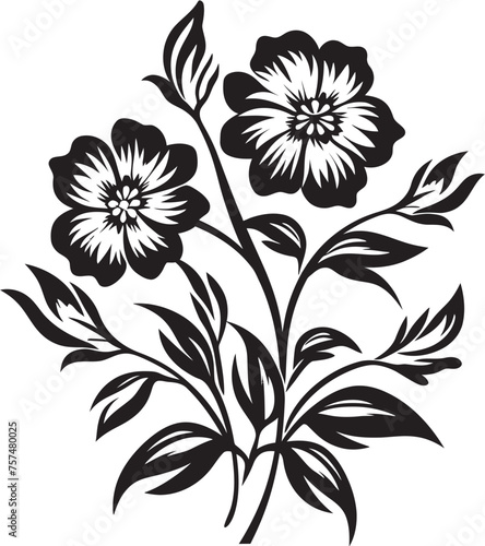 Charming Petals Alluring Blooming Flower Vector Black Logo Icon Floral Delight Joyful Vector Black Logo Icon with Blooming Flowers