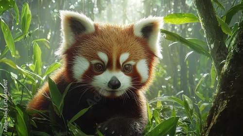 Charming Red Panda Relaxing in a Lush Green Forest Environment