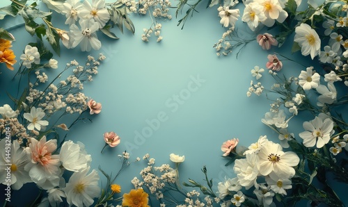 Charming Spring Flower Frame with Colorful Blooms. AI generated illustration.