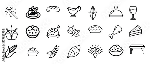 Charming thanksgiving holiday icons featuring festive food and symbols