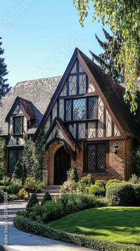 Charming Tudor Revival Home with Intricate Woodwork and Landscaping
