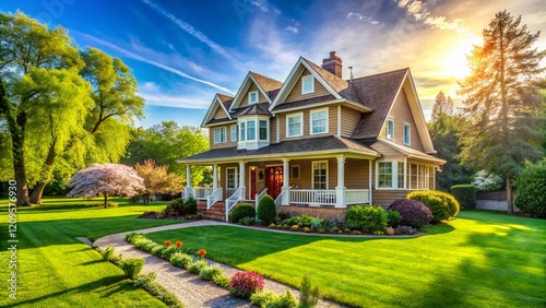 Charming Two-Story American Country House with Spacious Yard, Perfect for Family Living