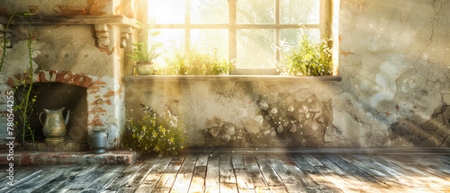 Charming Vintage Window, Greenery Peeking Through, A Nostalgic Look at Rustic Beauty and Simplicity in Architectural Design