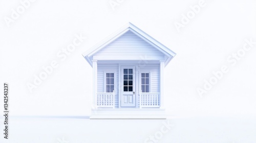 Charming White Cottage House 3D Render Home Exterior Real Estate