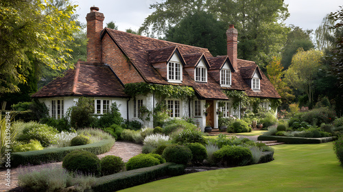 Charming White Countryside Cottage with Exquisite Manicured Garden and Lush Greenery