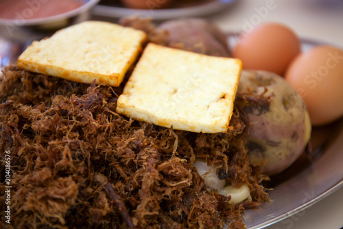 Charque or jerky is a salted meat that is dehydrated with exposure to the sun. It is an ancestral technique that makes it possible to preserve meat for long periods of time. Close up