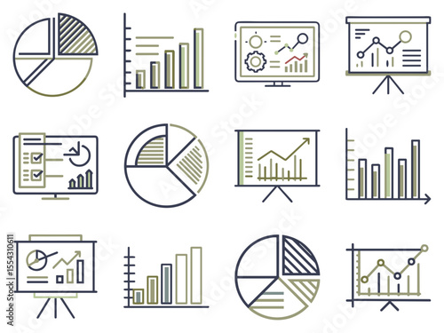 Chart icon set - Data Visualization Icon Collection for Business Analytics and Presentations - Chart and Graph Icons for Websites, Reports and Dashboards with Professional Line Style