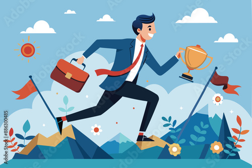 Chasing Success: Ambitious Businessman Motivated by Rewards and Incentives to Reach Goals