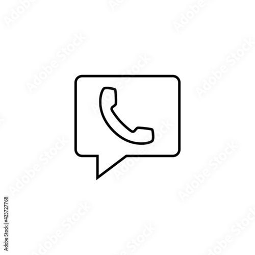 Chat bubble, with phone icon in flat black line style, isolated on white