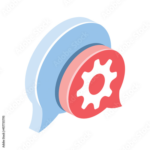 Chat bubbles and cog gear setting. Vector 3d symbol, isometric, color web icons, new flat style. Creative design idea, concept for infographics.