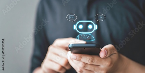 Chatbot conversation Ai Artificial Intelligence technology online customer service. Digital chatbot, robot application, Open AI generate. Futuristic technology. Virtual assistant on internet. Robotic.