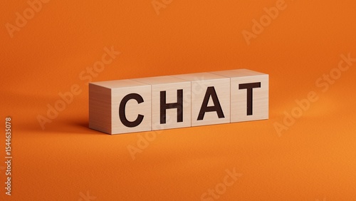 Chat.wooden cubes spelling.Flat lay view from above on wooden cubes buttons.IT technology concept.3D rendering on orange background.