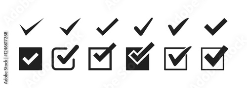 Check box icon with correct, accept checkmark icons tick box checked. Approve symbol.