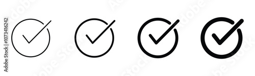 check box icon with correct with different line width. approved symbol. accept checkmark icons green tick box, check list circle frame symbol sign.