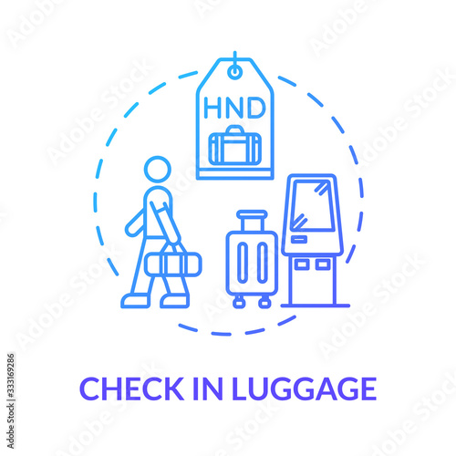 Check in luggage concept icon. Baggage control idea thin line illustration. Passenger with hand luggage in airport terminal. Vector isolated outline RGB color drawing