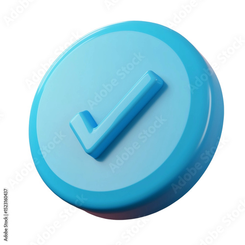 check mark button 3d icon in cartoon plastic style minimal isolated on transparent white background, clipping path