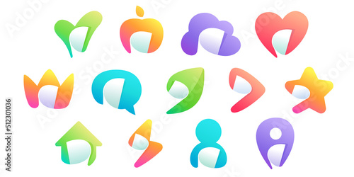 Check mark, chat, star, play button, crown, lightning, user profile, cloud, and leaf icons set.