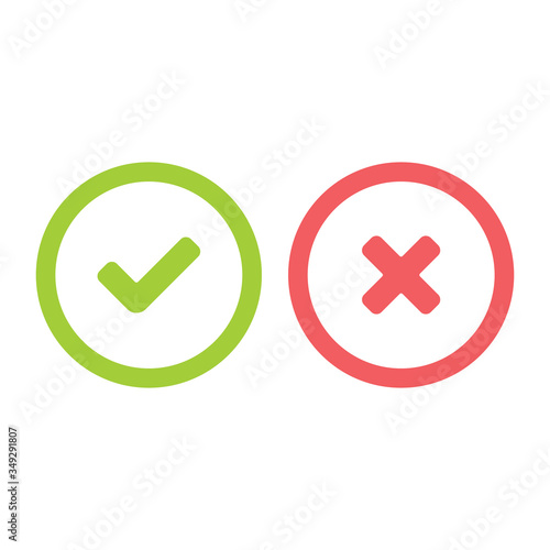 Check mark icons, x or tick approve. vector icon for apps and websites.