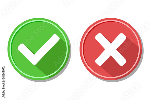 Check marks yes and no. Vector illustration round icons in a flat style isolated on white background.