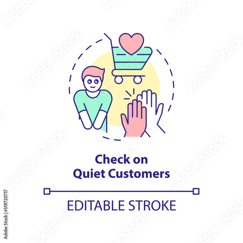 Check on quiet customer concept icon. Appreciate client. Customer engagement strategy abstract idea thin line illustration. Isolated outline drawing. Editable stroke. Arial, Myriad Pro-Bold fonts used