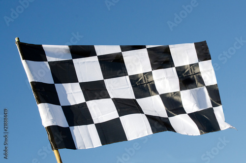 Checkered flag isolated on blue sky background