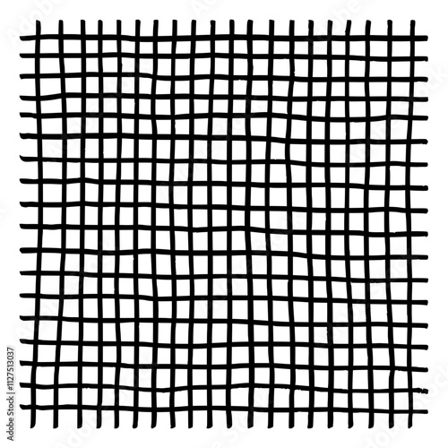 Checkered pattern. Horizontal and vertical jagged, straight lines drawn by hand, intersecting at 90 degrees. Stripes forming grid. Vector textured ornament on white isolated background.