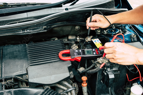 Checking power of battery by clamp meter, maintenance car by yoursalf, Monthly check.