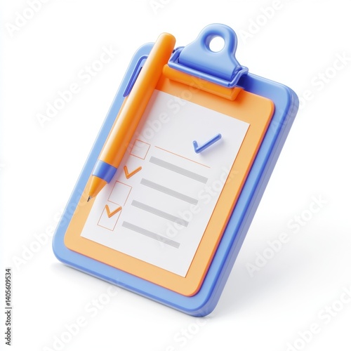 Checklist clipboard with pen. A 3D render of a clipboard with a checklist and pen, ready for tasks