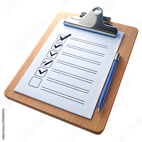 Checklist document clipboard icon 3d rendering design with verification on transparent background