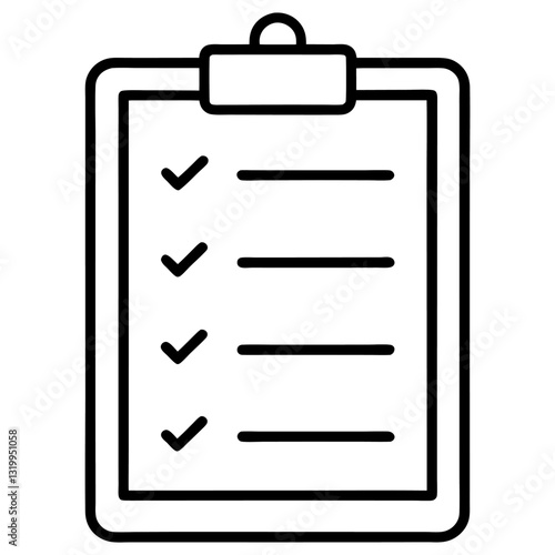 Checklist Vector Icon – White Background | Cartoon, Clipart & Line Art Illustration, Checklist vector icon with white background, clipart, cartoon, and line art for digital use.