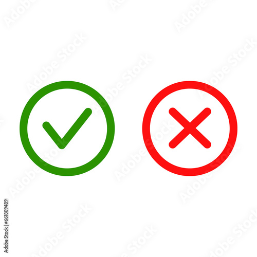 Checkmark / check, x or approve & deny color flat line art icon for apps and websites.