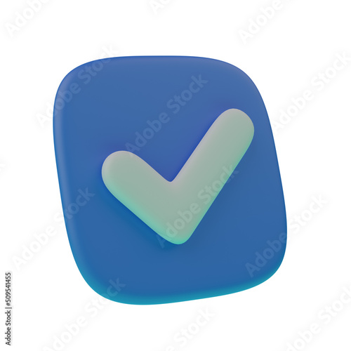 Checkmark or approved or verified icon or symbol isolated in white background. 3D Illustration