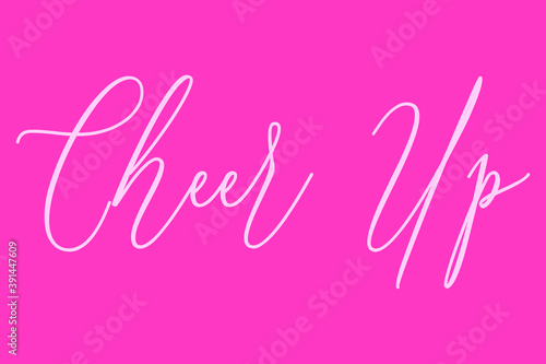 Cheer Up Cursive Typography Light Pink Color Text On Dork Pink Background